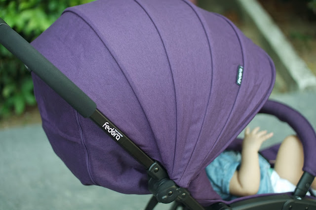 Because Singapore's weather is crazily erratic, I find having a stroller with a canopy to shade my tot extremely important! There have been times when I'm out with my baby and it starts to drizzle or if she's asleep but the sun's just blazing and shining in her eyes so having a stroller with an attached canopy really comes in handy! All I have to do is just extend the shade over her! The Fedora L3 stroller has a canopy that can also be adjusted at different lengths so it's really great to use in a light drizzle or shine! It can also be unzipped at the back to open up for ventilation!
