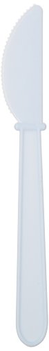 - White plastic knife coordinates with other white utensils and many tableware designs and decorations