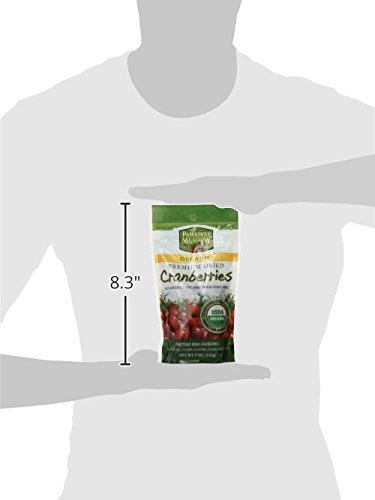 -. Binding : Grocery -. Brand : Paradise Meadow -. EAN : 0710456034008 -. Feature : 5-Ounce Package / Real Cranberries; No preservatives; all natural; fat free; made with real fruit; kosher; loaded with antioxidants; one third cup serving equals one full serving of fruit / Loaded with antioxidants; one third cup serving equals one full serving of fruit / resealable package / Decas Cranberry Products is located in Carver, MA -. Label : Decas Cranberry Products -. Manufacturer : Decas Cranberry Products -. NumberOfItems : 1 -. PackageQuantity : 1 -. ProductGroup : Grocery -. ProductTypeName : GROCERY -. PublicationDate : 2012-06-25 -. Publisher : Decas Cranberry Products -. Size : 5 Ounces -. Studio : Decas Cranberry Products -. Title : Paradise Meadow Organic Premium Dried Cranberries, 5-Ounce -. UPC : 710456034008