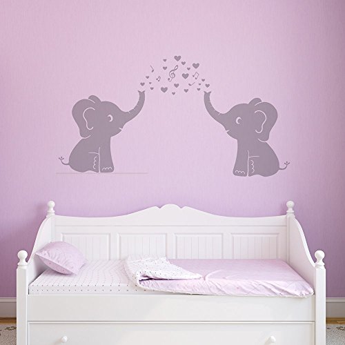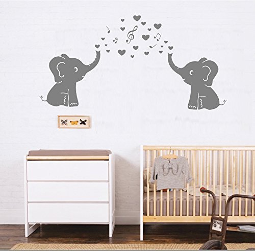 MAFENT(TM) Lovely Elephant Vinyl Wall Decal With Hearts And Music Symbols Wall Stickers for Baby Kids Room Decoration Color: Grey