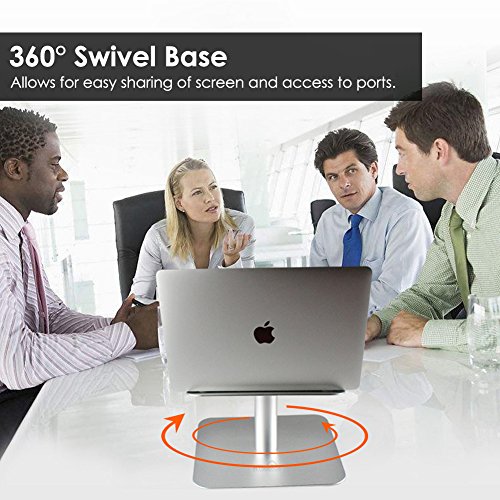 -. Binding : Office Product -. Brand : MayAi -. Color : silver -. EAN : 0766330859526 -. Feature : Raises screen height up by 6.3 inches (16 cm), you can type and read more comfortably. / 360°Swivel base allows for easy sharing of screen and access to ports. / 10" Wide Surface is compatible with ALL laptops between 10" to 17.3". / Aluminum panel keep your computer from moving or wobbling while typing, pling in cables or removing media from the USB ports. / Constructed of polished, high-strength aluminum that will not bend or break. -. Label : MayAi -. Manufacturer : MayAi -. MPN : USDNZJ052 -. PackageQuantity : 1 -. PartNumber : USDNZJ052 -. ProductGroup : Office Product -. ProductTypeName : OFFICE_PRODUCTS -. Publisher : MayAi -. Size : L -. Studio : MayAi -. Title : Laptop Stand with Swivel Base, MayAi Stable Aluminum laptop desk stand for Macbook Notebooks Tablets between 10" to 17" No Wiggling No Shaking -. UPC : 766330859526