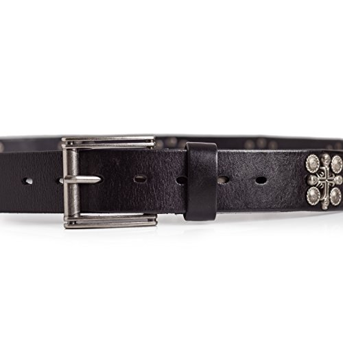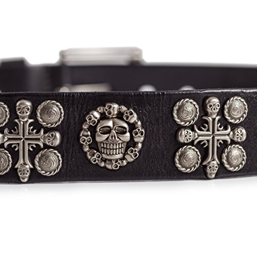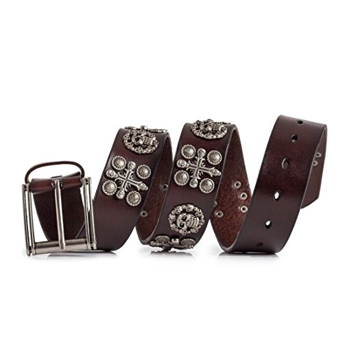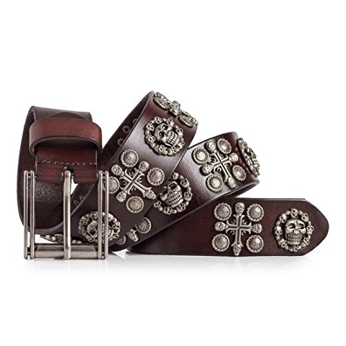Product DescriptionCool rocker belt with skull and cross studs. Solid craftsmanship. Material: full grain leather. Available in black or brown.0
