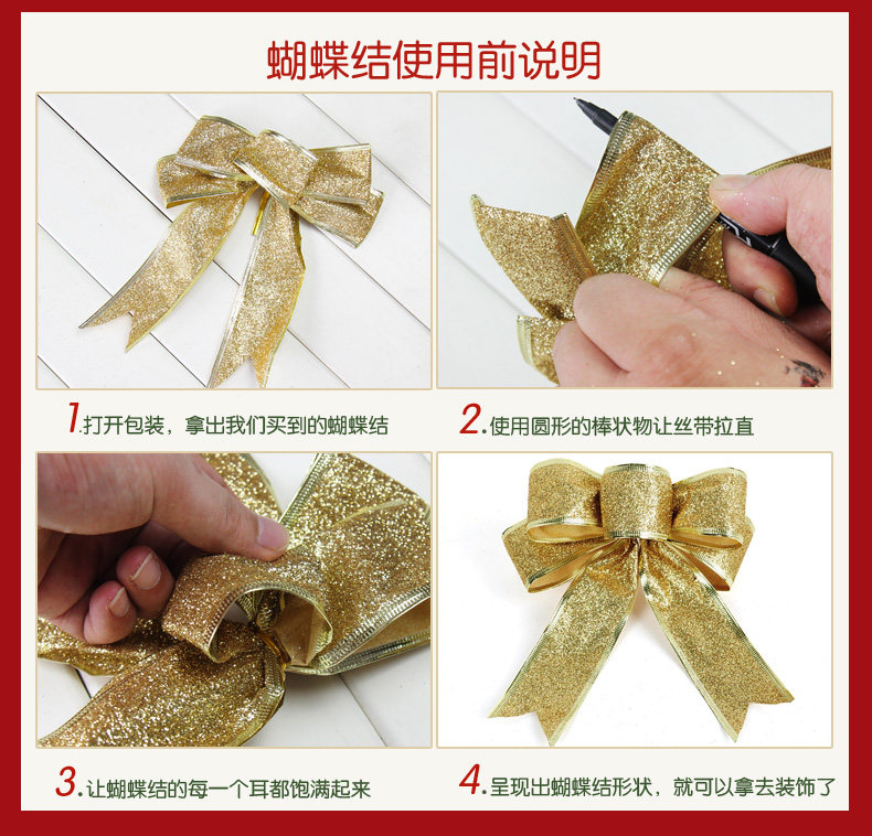 [Name] Christmas decorations 20 * 20cm high-grade onion powder bright gold bow tie
