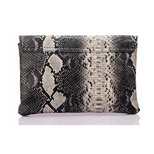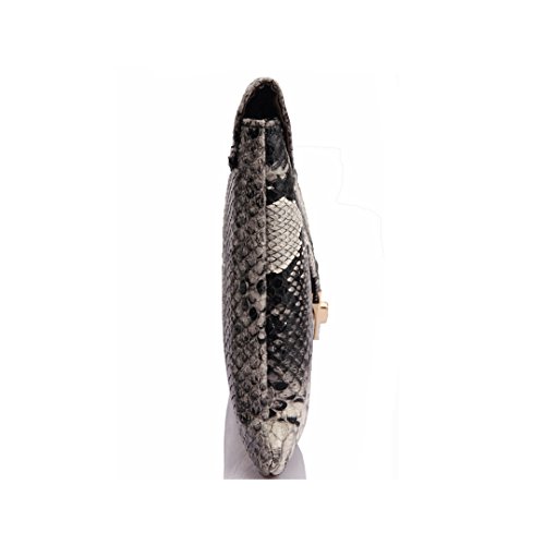 -. Feature : The snakeskin clutch bag is made of quality Pu leather,it's texture is very advanced / This perfect bag is fashionable as well as functional,it allows you to keep all your daily essentials in one convenient and stylish place / Approx: 11.8" x 7.5"(W*H), Enough room to put your personal belongings in it like ID card, keys, credit card, cash, cell phone, lip gloss,etc / Front lap front with a twist lock closure closure, detachable chains and zipper closure inside,can be used as a shoulder bag,handbag,clutch / Beautiful and stylish gifts sent to relatives, girl friends and colleagues for various events and everyday use