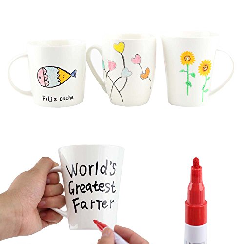 Felizwill Paint Markers Pens for Ceramic, Glass, Metal, Canvas, Wood, Fabric, Canvas. Ideal Product for Mug Customizing (Pack of 5)