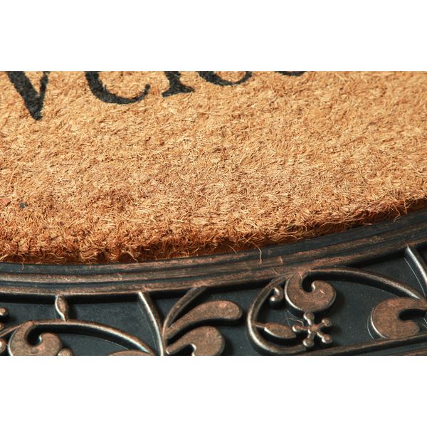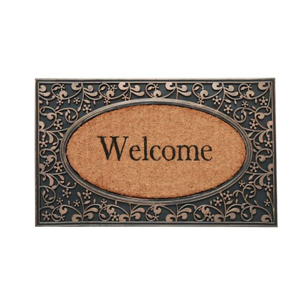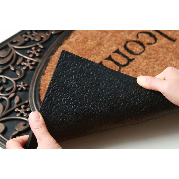 インド製の外用玄関マットです。天然素材のココナッツ繊維(コイヤー)を中心部分に使用しています。ココナッツ繊維は水はけが良く、繊維自体が強く砂や汚れなどを落としてくれます。またココナッツ繊維部分の厚みは約12mmありボリューム感があります。外側にはラバーを使用しております。柄を立体的に表現しています、またラバーの柄部分を塗装し、高級感を演出しました。本商品は汚れたら水で洗い流せます。玄関をおしゃれに彩ってくれる商品です。