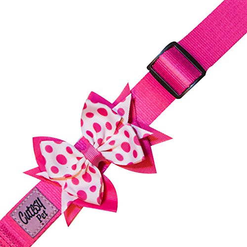 Studio : Cutesy Pet Publisher : Cutesy Pet Binding : Misc. Product Description A designer dog collar made for today's cutest pets, this is a delightful pink polka-dotted print bow accented by a pink bow, on a pink collar. Each unique design includes a high-quality nylon collar with black plastic buckles and a silver D-Ring, and is made with a custom, multi-layered grosgrain bow. The bow is more than a bowtie, Our unique design allows the bow to always stay visible on the side of the neck, regardless of the activity level of the dog or puppy. Our proprietary stitching technique keeps the bow in place without risk of falling off or adjusting and irritating your pet. The collar itself is fully adjustable to ensure maximum comfort for your pet at all times. MATCHING LEASH AVAILABLE: For each design, the matching leash is available. Available only from Cutesy Pet. Cutesy Pet brings eye-catching designs to the world of designer pet products. Our beautifully crafted collars and leashes are created with the highest product standards and are among the best quality available. Our designers have a passion for pets and only create things we want our own pets to wear. Unlike other 'designer' brands out there, we have a very focused product line and strive to make the best products, not the most. With us, you get the best! Take pride in your purchase! For every item sold, a donation is made to a nonprofit, no-kill shelter to help increase adoptions and turn around the euthanasia pandemic in our country. Purchase now and help Spread the Cuteness! 0