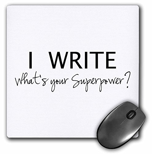 -. Binding : Office Product -. Brand : 3dRose LLC -. EAN : 0888414738821 -. Feature : Dimensions (in inches): 8 W x 8 H x 0.25 D / Matte finish / Soft to touch, will not crack or peel / Clean with mild detergent / Made of heavy-duty recycled rubber -. Label : 3D Rose (Home Improvement) -. Manufacturer : 3D Rose (Home Improvement) -. Model : mp_194455_1 -. MPN : mp_194455_1 -. NumberOfItems : 1 -. PackageQuantity : 1 -. PartNumber : mp_194455_1 -. ProductGroup : Office Product -. ProductTypeName : OFFICE_PRODUCTS -. PublicationDate : 2015-01-16 -. Publisher : 3D Rose (Home Improvement) -. Studio : 3D Rose (Home Improvement) -. Title : 3dRose I Write Whats Your Superpower Fun Gift for Writers Writing Love Mouse Pad (mp_194455_1) -. UPC : 888414738821 -. Warranty : mouse-pads;computing-wrist-rests;mouse pad;soft;computer;electronics;picture;image;photo;photograph;table;novelty;pictures;home;custom;gift;thick