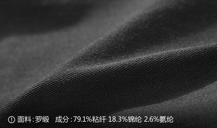 | 主 料:79.1%粘纤 18.3%锦纶 2.6%氨纶颜 色:黑色 |