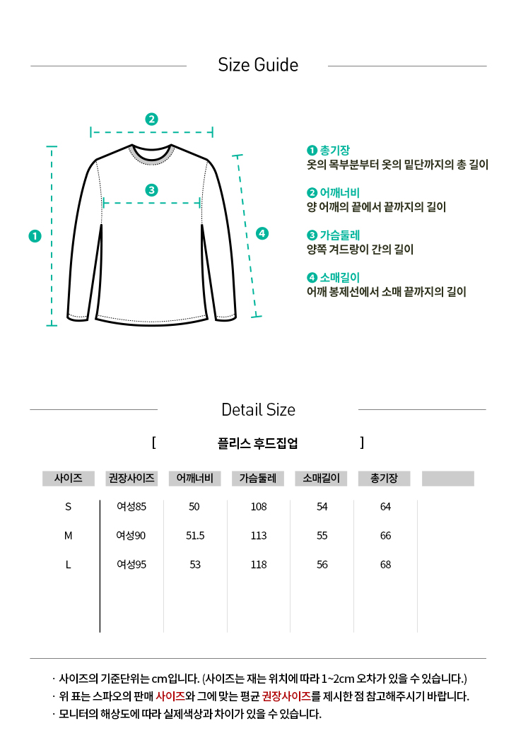 |  Select01 스파오(SPAO) 플리스 스탠 집업 판매가 19,900원 | Select02 스파오(SPAO) 플리스 후드집업 33% 29,900 판매가 19,900원 | Select03 스파오(SPAO) 플리스 후드 집업 33% 29,900 판매가 19,900원 | Select04 스파오(SPAO) 퍼 플리스 집업 33% 29,900 판매가 19,900원 | Select05 스파오(SPAO) 보아퍼 후드 집업 25% 39,900 판매가 29,900원 | Select06 스파오(SPAO) 보아퍼 후드짚업 50% 39,900 판매가 19,900원 | Select1 스파오(SPAO)플리스 스탠 집업 Select2 스파오(SPAO)플리스 후드집업 상품 실측 사이즈 표준사이즈 표입니다. | 표준사이즈 | S | M | L | | 브랜드사이즈 | S | M | L | | 어깨넓이(cm) | 50 | 51.5 | 53 | | 소매길이(cm) | 54 | 55 | 56 | | 가슴둘레(cm) | 108 | 113 | 118 | | 전체길이(cm) | 64 | 66 | 68 | Select3 스파오(SPAO)플리스 후드 집업 상품 실측 사이즈 표준사이즈 표입니다. | 표준사이즈 | S | M | L | XL | | 브랜드사이즈 | S | M | L | XL | | 어깨넓이(cm) | 47 | 48.5 | 50 | 51.5 | | 소매길이(cm) | 58 | 59.5 | 61 | 62.5 | | 가슴둘레(cm) | 105 | 110 | 115 | 120 | | 전체길이(cm) | 66 | 68 | 70 | 72 | Select4 스파오(SPAO)퍼 플리스 집업           상품 실측 사이즈 표준사이즈 표입니다. | 표준사이즈 | S | M | L | XL | | 브랜드사이즈 | S | M | L | XL | | 어깨넓이(cm) | 43 | 44.5 | 46 | 47.5 | | 소매길이(cm) | 61 | 62.5 | 64 | 65.5 | | 가슴둘레(cm) | 100 | 105 | 110 | 115 | | 전체길이(cm) | 64 | 66 | 68 | 70 | Select5 스파오(SPAO)보아퍼 후드 집업 상품 실측 사이즈 표준사이즈 표입니다. | 표준사이즈 | M | S | L | XL | | 브랜드사이즈 | M | S | L | XL | | 어깨넓이(cm) | 45.5 | 44 | 47 | 48.5 | | 소매길이(cm) | 62.5 | 61 | 64 | 65.5 | | 가슴둘레(cm) | 107 | 102 | 112 | 117 | | 전체길이(cm) | 66 | 64 | 68 | 70 | Select6 스파오(SPAO)보아퍼 후드짚업  상품 실측 사이즈 표준사이즈 표입니다. | 표준사이즈 | M | S | L | | 브랜드사이즈 | M | S | L | | 어깨넓이(cm) | 51.5 | 50 | 53 | | 소매길이(cm) | 55.5 | 54.5 | 56.5 | | 가슴둘레(cm) | 115 | 110 | 120 | | 전체길이(cm) | 68 | 66 | 70 | |