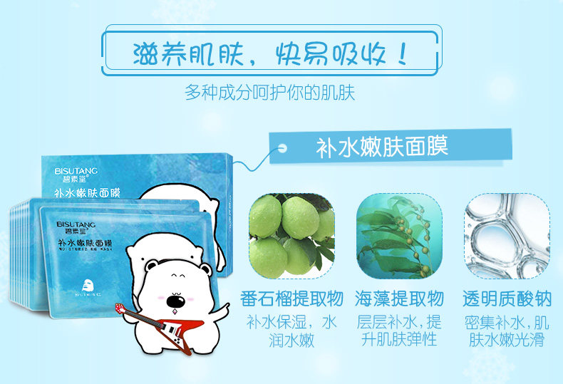 卡通手绘补水保湿面膜 补水保湿滋润护肤面膜贴化妆品30片