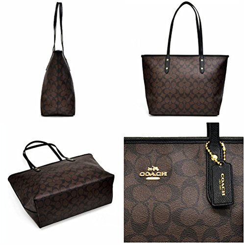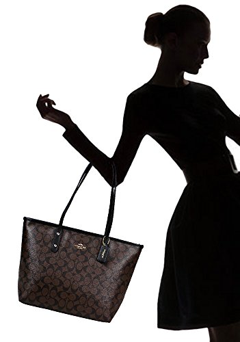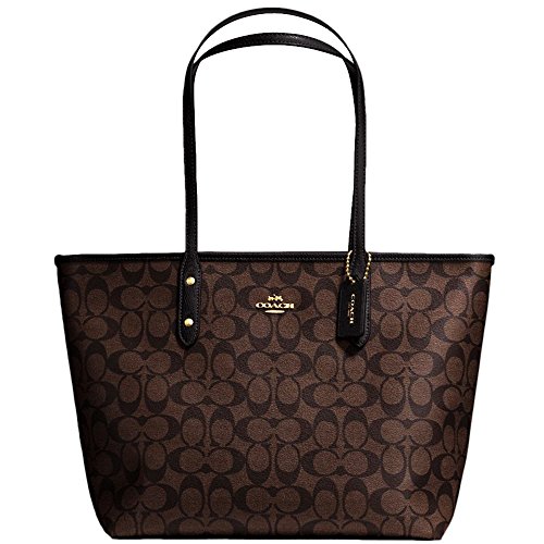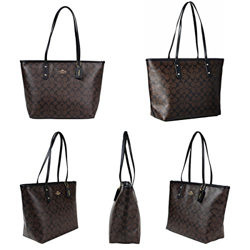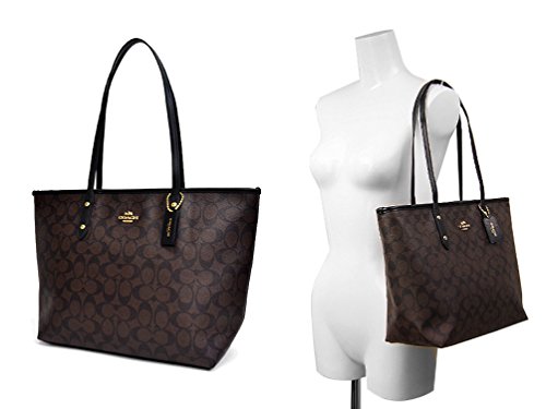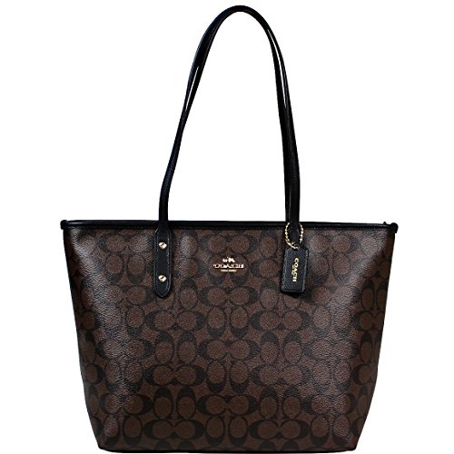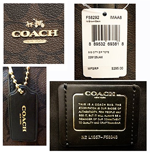 -. Title : New Authentic Signature City Zip Tote in Monogram Brown/Black - Large
