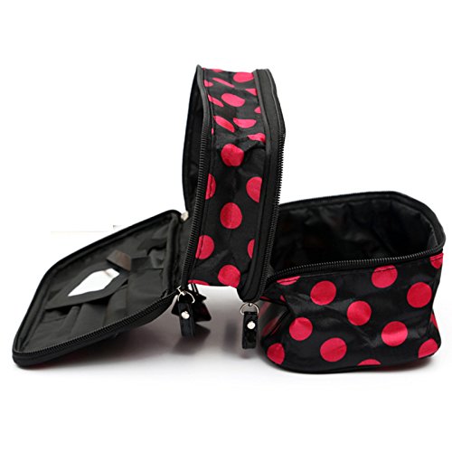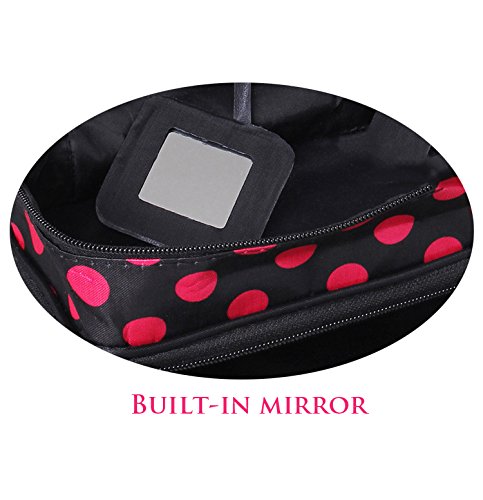 - FASHION DESIGN : It Was Polka Dot Printed by Fashionable Bright Colorful Design, Featured by Zipper Closure Will Bring More Convenient When Close Or Open for Makeup,A Very Popular Makeup Organizer for Beauty Accessories.