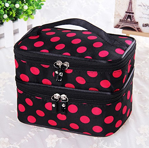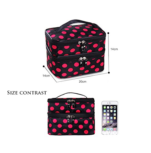 Vinmax Makeup Organizer Double Layer Travel Cosmetic Bag for Beauty Fashion Polka Dot Bag Large Capacity Storage Toiletry Bag