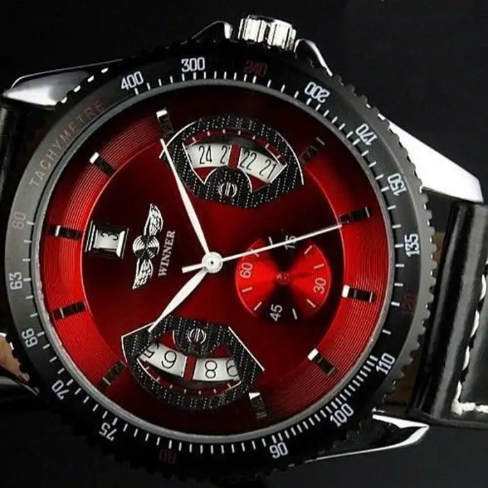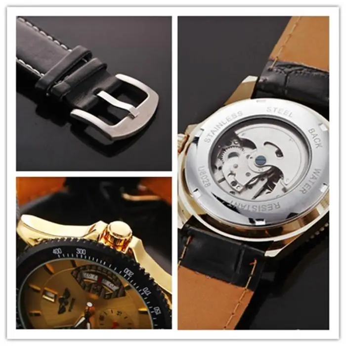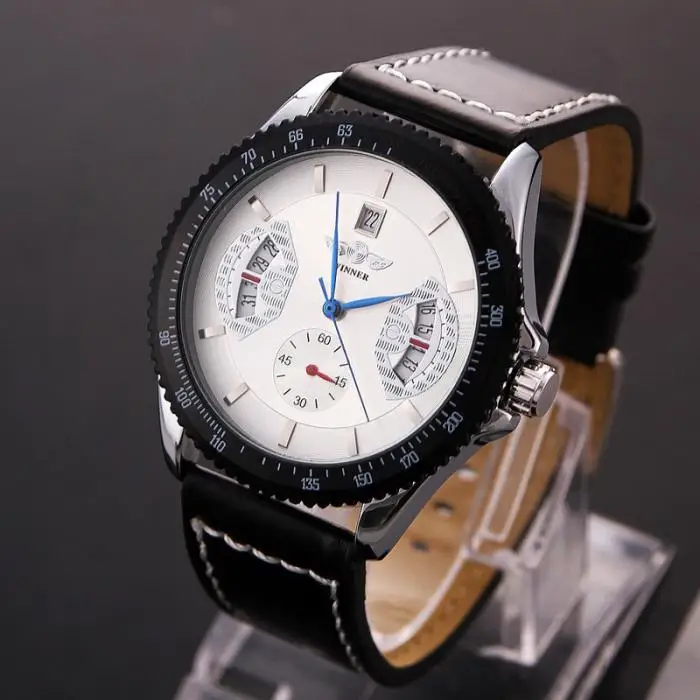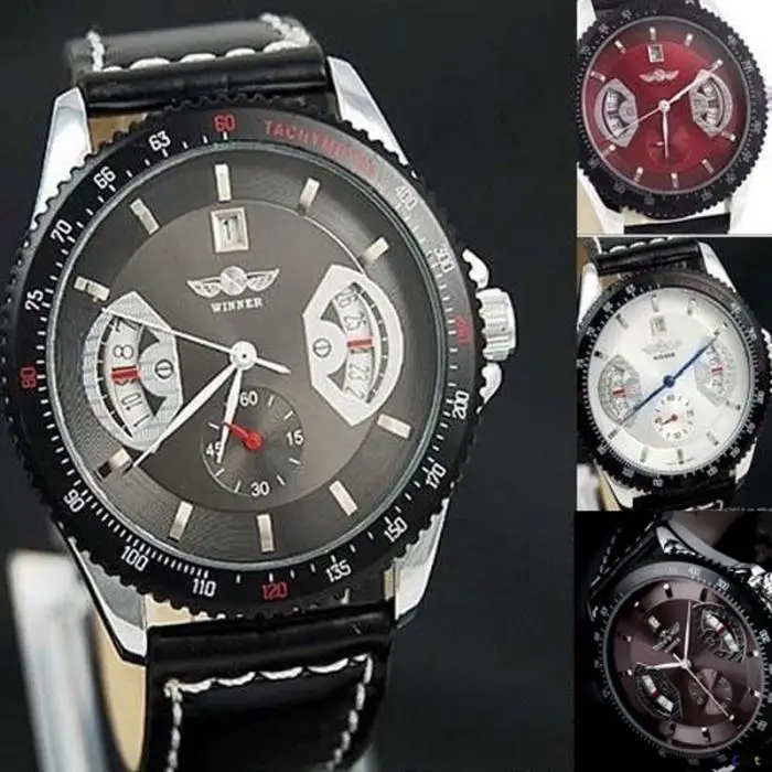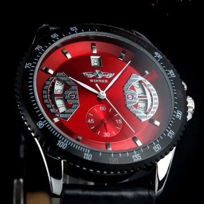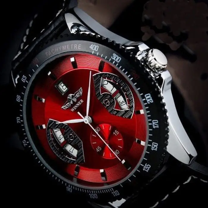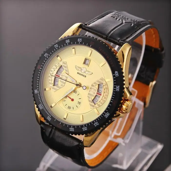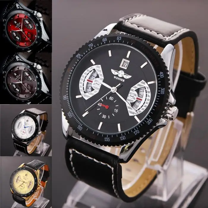Men's New Fashion Sports Leather Band Date Automatic Mechanical Analog Wrist Watch Men Steampunk Watches LXH
