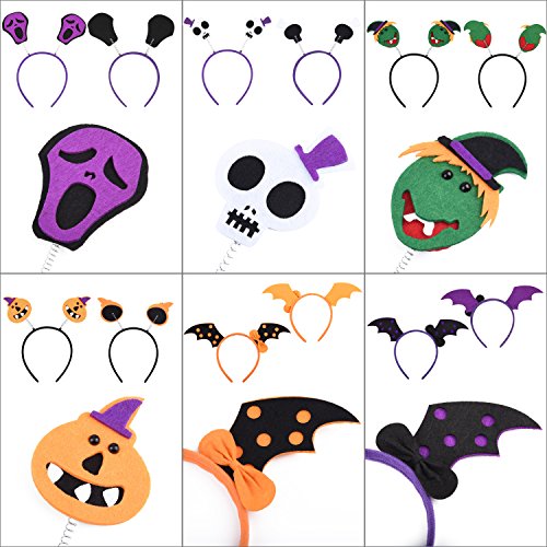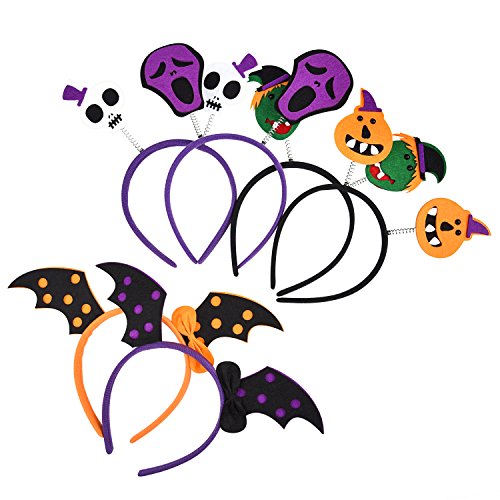 Skull Bat Pumpkin Hair Hoop Headpiece for Kids Costume Party Decoration Pack 6pcs