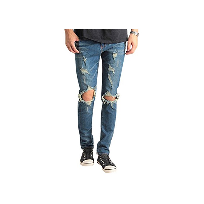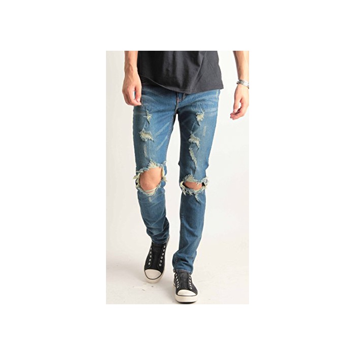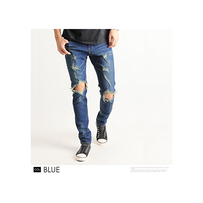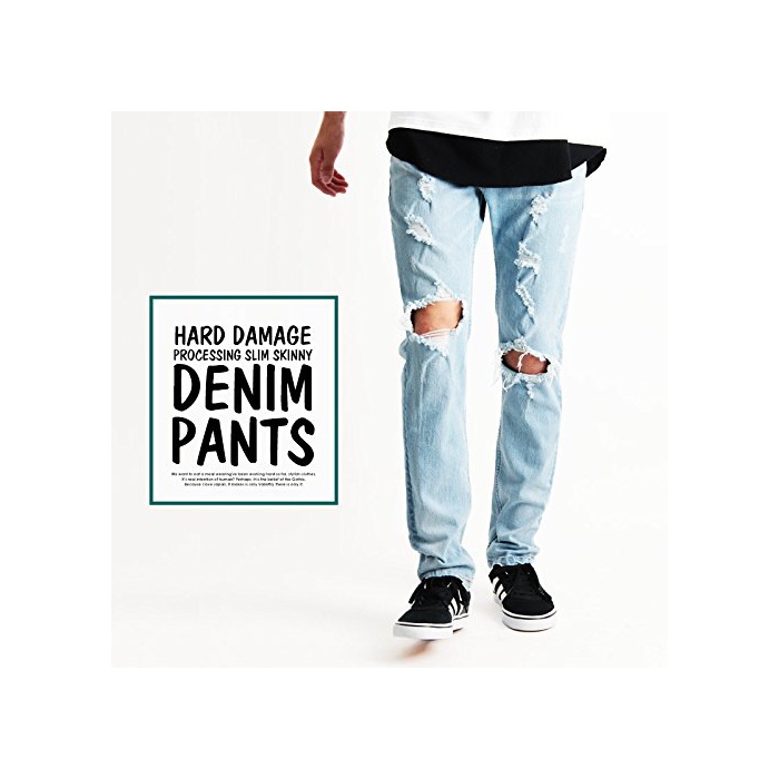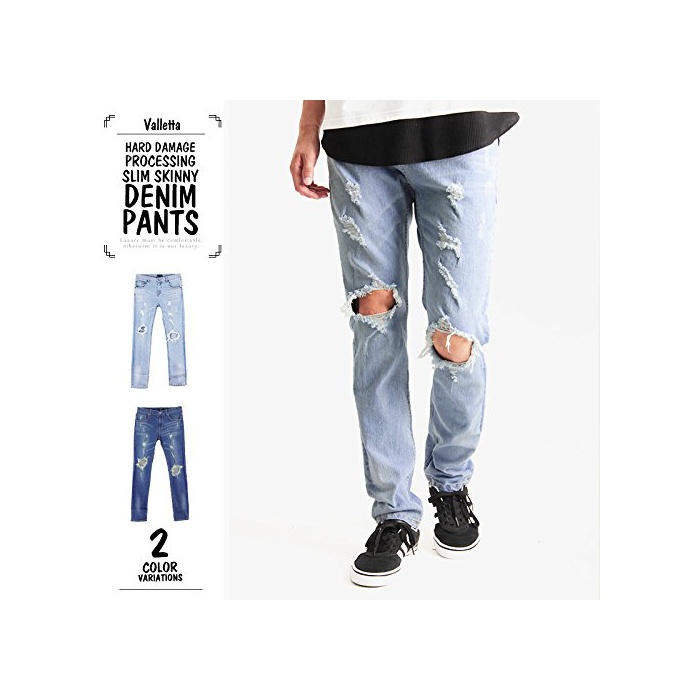 Valletta 하드 데미지 가공 디자인 슬림 스키니 데님 팬츠 맨즈 크래쉬 진즈 스트리트 캐주얼 《아메카지》 모드 슈퍼 블리치 L사이즈