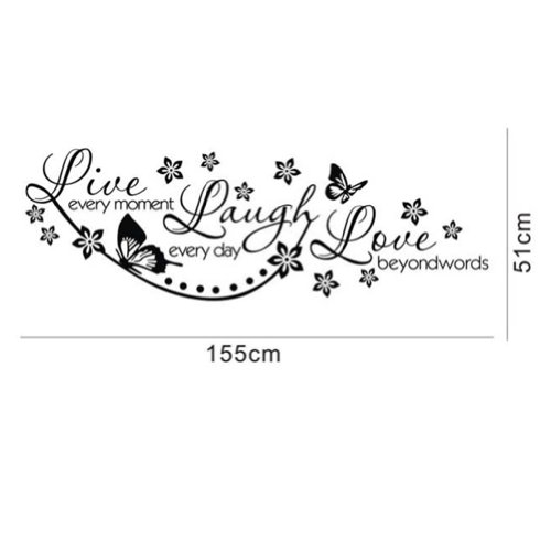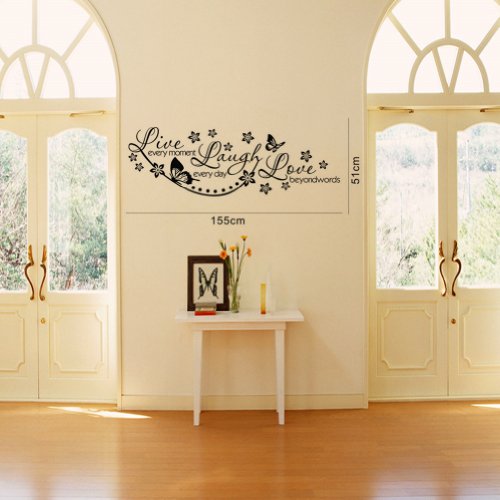 - Title : Olivia Wall Decals Quotes with Butterflies Flowers - Live Every Moment, Laugh Every Day, Love Beyond Words -Vinyl Removable Wall Stickers Quotes Inspirational Sayings Lettering Wall Art Decor for Children Kids Bedroom Nursery Living Room Home Decorations