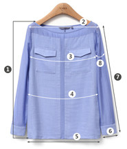 | 尺码 | ①衣长 | ②肩宽 | ③胸围 | ④腰围 | ⑤下摆围 | ⑥袖口围 | ⑦袖长 | ⑧袖臂围 | ||