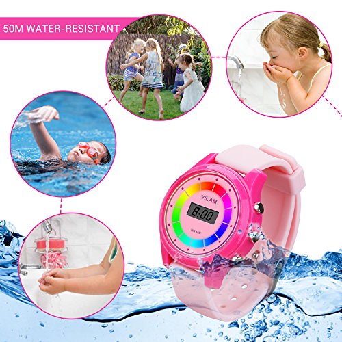 -. Title : Rainbow Coloured Lights Kids Watch - 7 Colors Flashing 50M Waterproof Children Electronic Watch, Washable Comfortable Watchband Digital Child Wrist Watch for Boys and Girls Christmas Gift