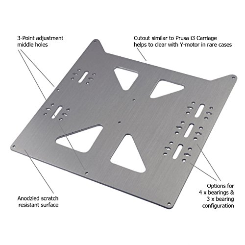 RepRap Champion Anodized Aluminum Y Carriage Plate Upgrade V2 for Prusa i3 RepRap 3D Printer