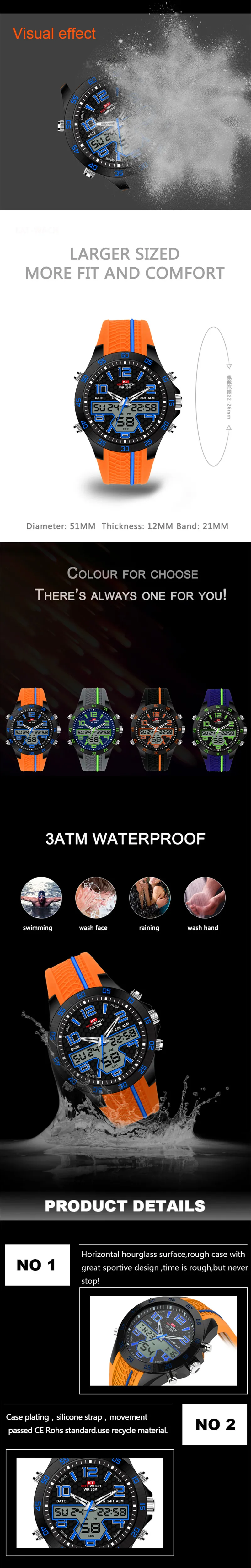 Feature:Complete Calendar,Luminous Hands,Stop Watch,LED display,Auto Date,Week Display,Water Resistant,Diver,Chronograph,Back Light,Swim,Alarm