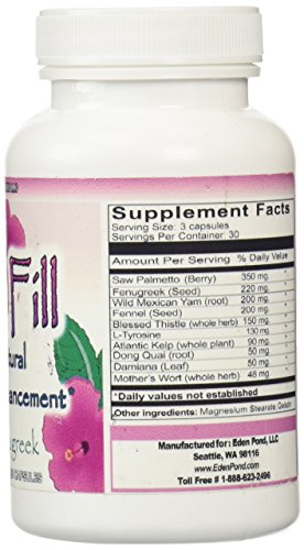 -. Binding : Health and Beauty -. Brand : Eden Pond -. EAN : 0799418386256 -. Feature : 3 pack value / Made in the USA / Increase breast size naturally / All natural and safe formula -. IsAdultProduct : 0 -. Label : Eden Pond -. Manufacturer : Eden Pond -. NumberOfItems : 1 -. PackageQuantity : 1 -. ProductGroup : Health and Beauty -. ProductTypeName : HEALTH_PERSONAL_CARE -. PublicationDate : 2014-04-19 -. Publisher : Eden Pond -. ReleaseDate : 2015-06-22 -. Studio : Eden Pond -. Title : Eden Pond Full Fill All Natural Breast Enhancement, 90 Capsules, 3 Count -. UPC : 799418386256