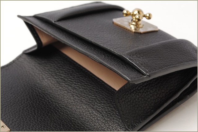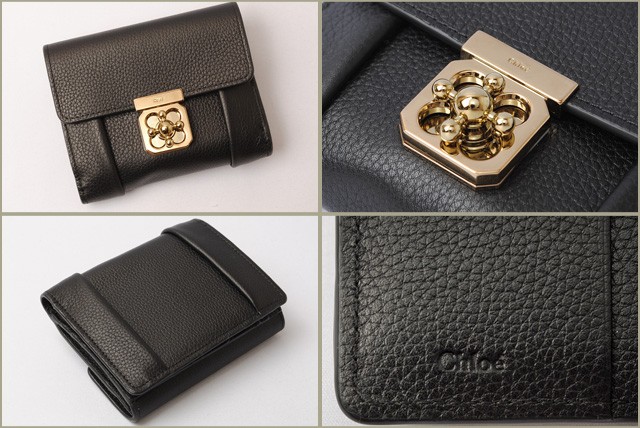 クロエ 財布Chloe 折財布/ダブルホック式 ELISIE/エルシー レザー BLACK/ブラック 3P0593-043クロエより、人気の折財布です。ラグジュアリーな雰囲気がただようエルシーラインより、ターンロックデザインが特徴のエレガントな仕上がりの折財布。コンパクトながら、充実の収納で、財布の中身が多くなりがちな方も、すっきり整頓できます。