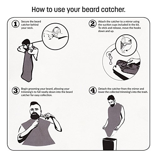 - BEARD APRON W/ SUCTION CUPS: Large (47’’ x 30’’) easy clean and waterproof beard apron, perfect for avoiding messy hair shaving situations and blocked sinks. Save time and money with a clog-free solution thanks to this essential shaving accessory