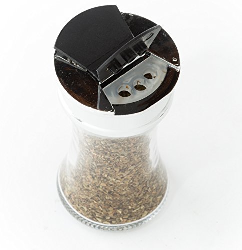 Glass jars have unique "flip lid," which permits easy pouring or shaking of spices