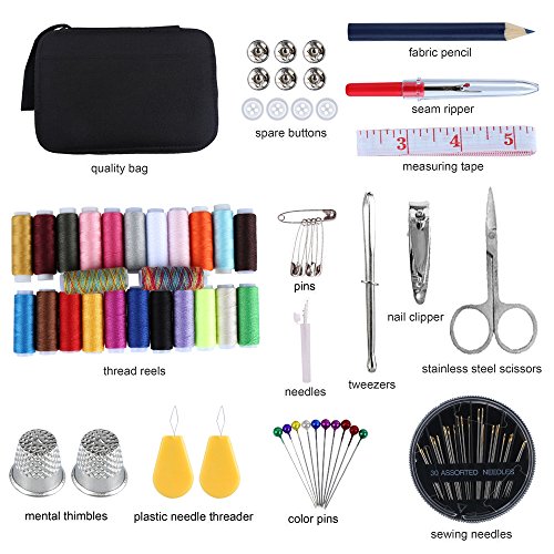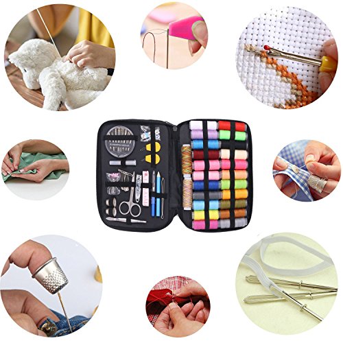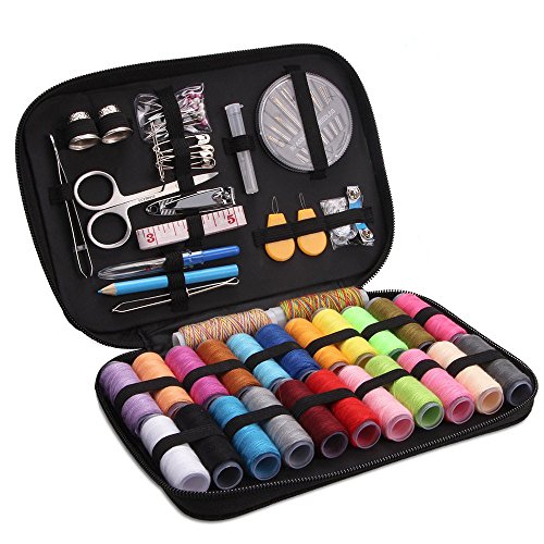 -. Feature : THE PERFECT SEWING KIT:A sewing kit which contains only the most essential and best sewing tools and that too in an easy to organize kit - to let you find anything that you need in a blink. Being a pro at quick fixes like replacing the button, repairing the seam of your shirt or mending the ripped hemline was never easier. So, be more self-sufficient and take care of small repairs yourself. / EASY TO USE:The case has easy-access elastic gripper areas for making it easier to organize and find the right notions when required. The kit has a scissor that can easily cut through a lightweight muslin to even a thicker cloth, a needle that can stitch on a variety of clothes and a seam ripper that makes picking out stitches incredibly simple. A kit that in a true sense makes your life easier. / ENJOY HAND SEWING:Don't need machine to use, the best compact sewing kit that is always available, sewing kit easy to access for those quick, on the go repairs great for missing buttons, ripped seams, or a quick them make. / SIMPLY TO CARRY:Take it with you everywhere! These premium light weight kits are small and portable, Our kit is lightweight and has secure-lock elastic straps to keep everything organized at all times, their ideal size can slip into a purse, suitcase, briefcase, office desk drawer, car, gym locker, or RV. You will always be prepared for any hand sewing Emergencies. / A USEFUL GIFT:The sewing kit makes an amazing gift for Mother's Day Gift, Christmas stocking stuffers, a frequent traveler, mother, grandmother, a backpacker, tween age girls, brides and bridemates, hostess gifts and just about everyone! And the sewing set is definitely something that people would love to use and will thank you for.