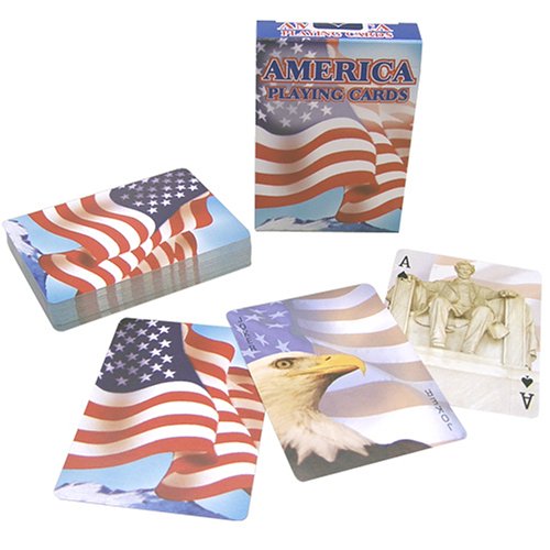 The American Flag deck of cards has two things going for it: On the outside, there is a snapshot of the stars and stripes crisply snapping in a breeze. On the playing side, there is a hidden world. Kings, Queens, Jacks and Jokers feature imagery that is distinctly and proudly American. The Statue of Liberty, the Washington Monument, and the Capitol are just a few of the landmarks on this elegant and patriotic deck of cards.