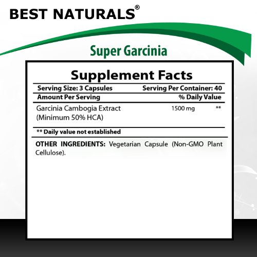 -. Binding : Health and Beauty -. Brand : Best Naturals -. EAN : 0817716011608 -. Feature : Garcinia Cambogia Extract Pure - Featuring Clinically-Proven, Ultra Pure 50% HCA Extract for Weight Loss - 1,500 mg Per 3 Capsules - Zero Filler Ingredients - The ONLY Product with 100% Scientifically Reviewed Garcinia Cambogia / Control Your Appetite & Inhibit Fat Production Naturally! / Garcinia Cambogia - Nature's perfect diet ingredient / Supports appetite control and healthy lipid levels | 1500mg/serving | 40 Days Supply / All Best Naturals products are manufactured in accordance with Good Manufacturing Practices (GMP), among the highest standards in the world -- Proudly Made in USA -- Purity & Potency Guaranteed -. IsAutographed : 0 -. IsMemorabilia : 0 -. Label : Best Naturals -. Manufacturer : Best Naturals -. Model : 817716011608 -. MPN : Garc-6291 -. NumberOfItems : 1 -. PackageQuantity : 1 -. PartNumber : Garc-6291 -. ProductGroup : Health and Beauty -. ProductTypeName : HEALTH_PERSONAL_CARE -. Publisher : Best Naturals -. Studio : Best Naturals -. Title : Best Naturals SUPER GARCINIA 1500 (Garcinia Cambogia Extract 500 mg per capsule) - 120 VCAPS -. UPC : 817716011608