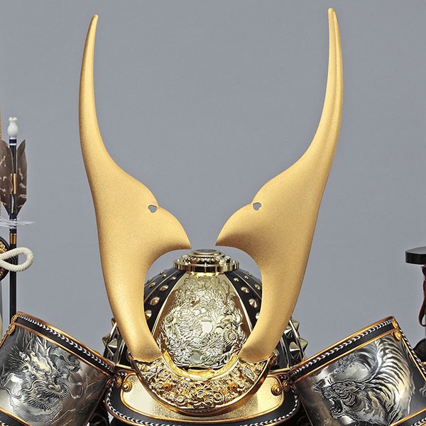 ・五月人形兜飾りには、お子様の健康な成長を願って勇壮に力強く仕上げました。