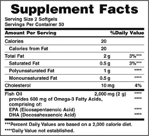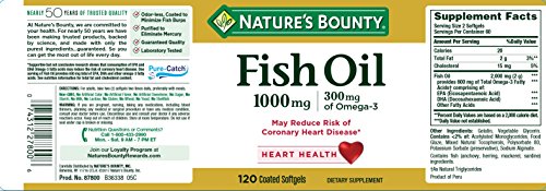 ReleaseDate : 2015-07-10 Studio : NBTY.inc - US Nutrition,inc. Publisher : NBTY.inc - US Nutrition,inc. Binding : Health and Beauty Product Description Nature's Bounty Fish Oil 1000 mg contains EPA and DHA, two Omega-3 fatty acids that help support and maintain the health of your cardiovascular system.* Omega-3 fatty acids are considered “good” fats important for cellular, heart and metabolic health and help maintain triglyceride levels already within a normal range.* 0