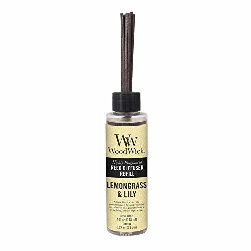 LEMONGRASS LILY WoodWick Refill for Reed or Spill Proof Diffusers Lemongrass Lily - Green floral scents complemented by subtle hints of sweet lemon and grapefruit for a refreshing herbal experience. New WoodWick 4 oz Reed Diffusers Refills feature highly concentrated fragrances infused with essential oils, natural espresso colored reeds and eco-friendly packaging. Use WoodWick's 4 oz Reed Diffuser Refills to refill any reed diffuser or create your own!