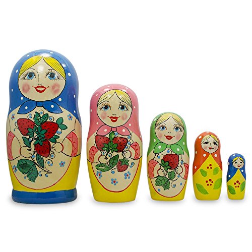 -. Title : 6.75" Set of 5 Strawberry Blue Dress Matryoshka Russian Nesting Dolls