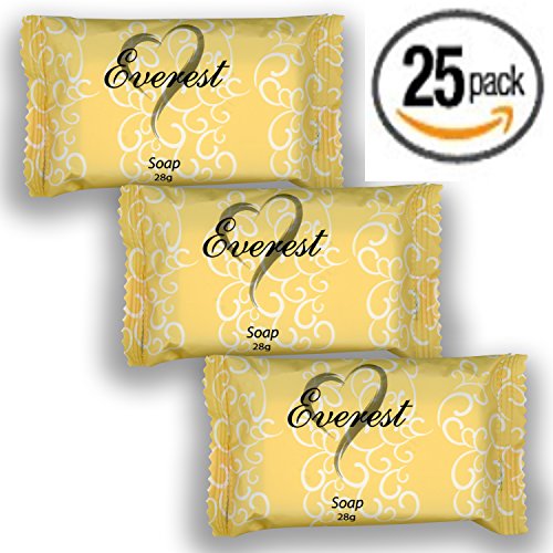 Everest Soap 25 PACK, 28 grams(1oz) Individually Wrapped Travel Soap Bar Amenities for Hotels, Motels, Resorts, AirBnB Guests Toiletries Bulk Discount Price Made of Coconut Oil (cocos nucifera oil)