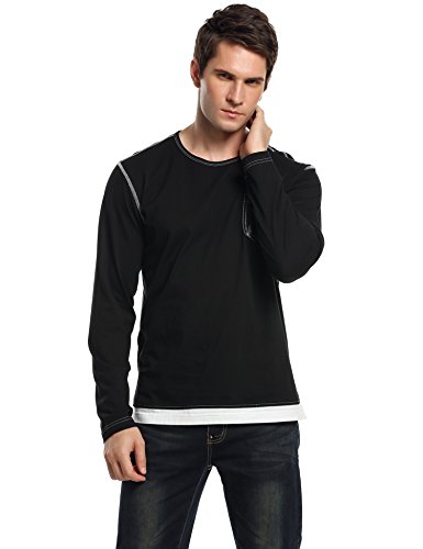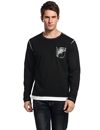 Coofandy Men O-Neck Long Sleeve Patchwork Pocket Loose T-Shirt Tops