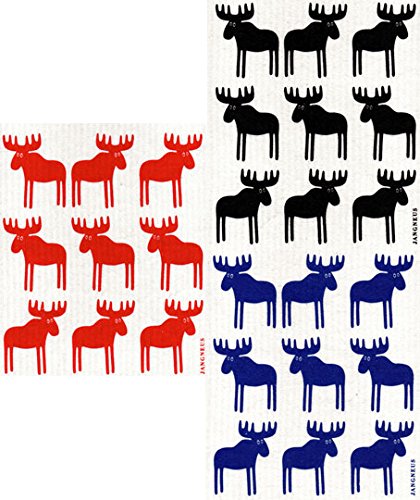 Swedish Dishcloth, Set of 3 Different Color Moose