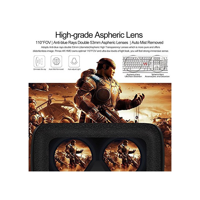 훌륭한 현장감 몰입감:최적인 110°FOV(인간의 눈(째)를 매우 닮고 있습니다)와 초저 레벨의 광누락 를 가지고 있기 때문에,PIMAX 4K VR은 현장감 넘치는 영상을 360도전 방위에 즐길 수,초3D영상과 훌륭한 몰입감을 제공 하고 있습니다.