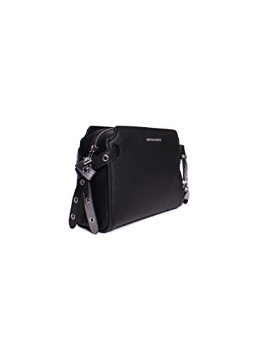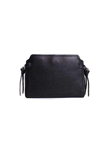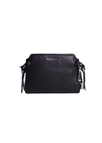 -. Feature : Color: Black / Fabric: Pebbled Leather / Silver Tone Metal Zipper Key Tag and "" Logo Label Plate / Messenger Crossbody Strap / Grommets Pockets: 2 Interior