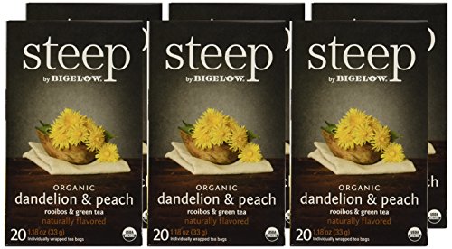 Bigelow Organic Dandelion and Peach with Rooibos and Green Tea, 20 Count (Pack of 6)