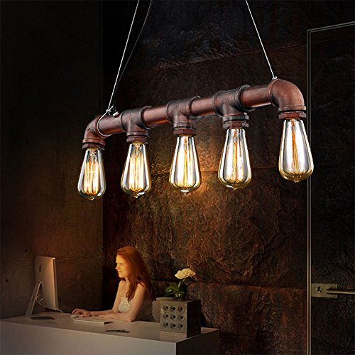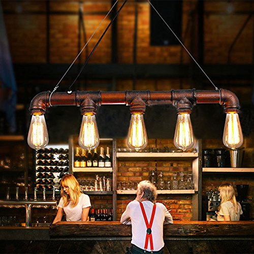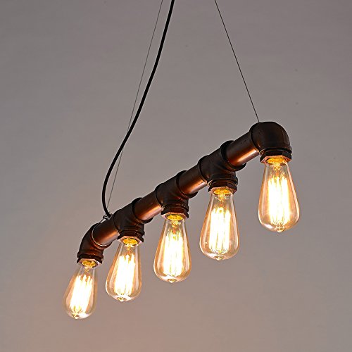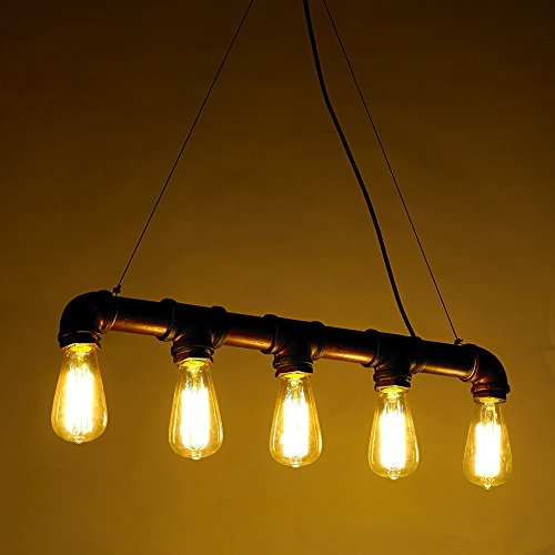 Fuloon Vintage Pendant Vintage Rustic Industrial Steampunk Straight Tube Water Pipe Pendant Hanging Ceiling Bar Light Island Chandelier(bulb not included)