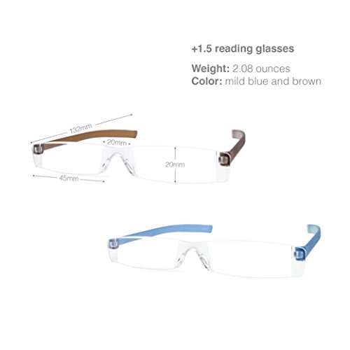 -. Binding : Health and Beauty -. Brand : H for Habitat -. Color : Blue, Brown -. EAN : 0712038867523 -. Feature : ULTRA-SLIM and SUPER LIGHTWEIGHT +1.5 reading glasses made of durable plastic / All-time favorite BLUE and BROWN color to match any dressing style / UNISEX and rimless design for both men and woman at all ages / FREE hard and waterproof cases with clips for extra protection / YEAR-ROUND BEST GIFT - let your love and care to be seen crystal clear -. IsAdultProduct : 0 -. Label : H for Habitat -. Manufacturer : H for Habitat -. ProductGroup : Health and Beauty -. ProductTypeName : HEALTH_PERSONAL_CARE -. Publisher : H for Habitat -. Size : 15 x 22cm -. Studio : H for Habitat -. Title : 2 Pairs of Rimless Lightweight Compact Reading Glasses with Slim Pocket Clip Hard Case Gift for Her / Him -. UPC : 712038867523
