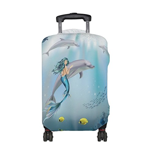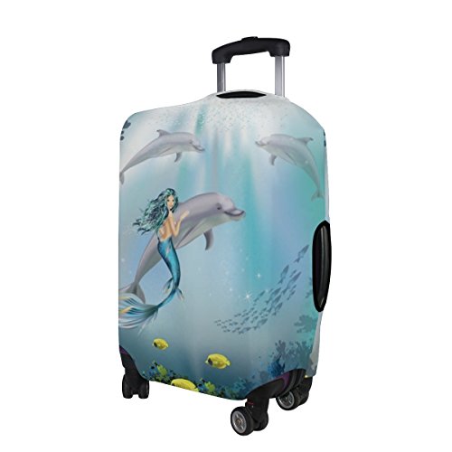 (ALAZA)/Accessories/Luggage, Bags Travel/DIRECT FROM USA/Cooper girl Underwater Dolphins And Mermaid Travel Luggage Cover Suitcase Protector Fits 23-26 Inch