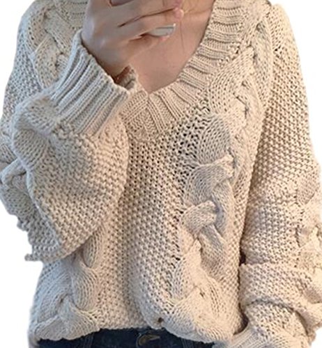 -. Title : (リバティーワーク)LibertyWork ケーブル セーター vネック アイボリー ゆったり レディース 長袖 おおきい 白 [並行輸入品]
