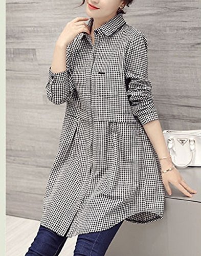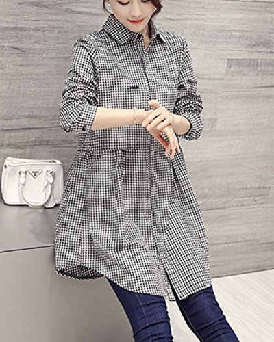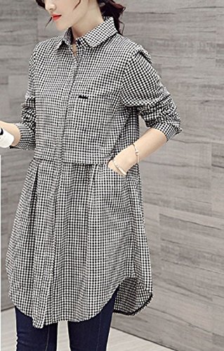 -. Title : (エヌアンドティー) N&T チェック 柄 ギンガム 長袖 シャツ レディース チュニック Aライン カジュアル デート 公園 ママ お出かけ (小チェック柄・サイズ:XXL)