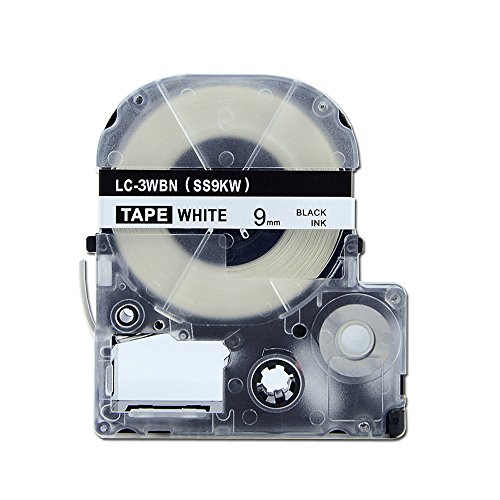 Absonic Tape Cassette Replacement for ESPON LW-300 LW-400 LW-600P LW-700 LC-3WBN9 (3/8" x 26, 9mm x 8m, Black on White)