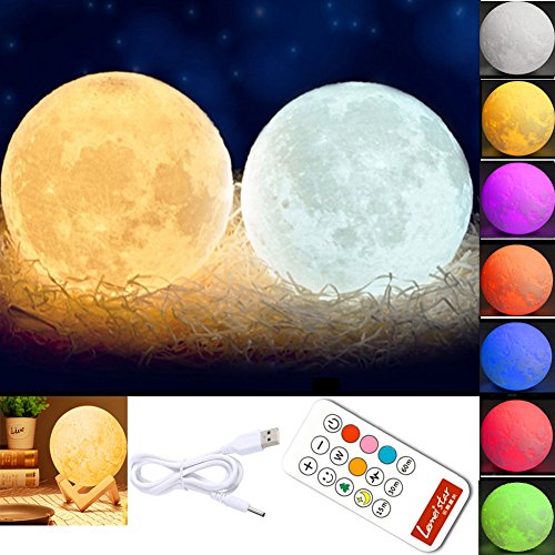 -. Title : Global-store 3D Moon Lamp Baby Night Light Remote Control, White and Warm White with Adjustable 7 Colors Rechargeable and Timer(5.9Inch)